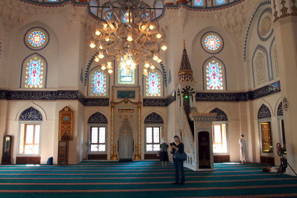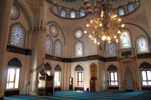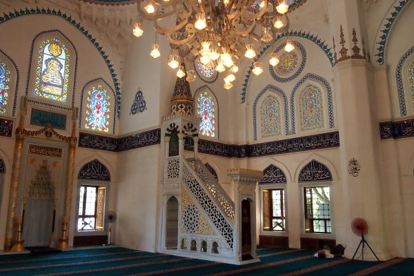 | 金曜礼拝など集団で礼拝が行われる大きなモスクをジャーミイと呼んでいて、東京ジャーミイは日本最大規模のジャーミイです。 建築資材や調度品のほとんどはトルコから運んだものをトルコの職人が1年をかけて建築したものです。 |