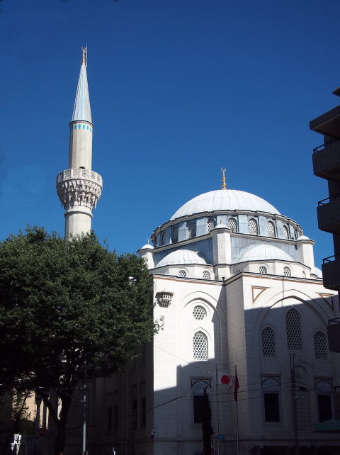 | 小田急線代々木上原駅の近くにある東京ジャーミイは日本最大のオスマントルコ様式の回教寺院(モスク)です。 ジャーミイとはトルコ語で金曜礼拝を含む1日5回の礼拝が行われるモスクを表し、「人の集まる場所」を意味するアラビア語を語源としています。 東京ジャーミイには1階にイスラム教(回教)やトルコの文化を紹介するトルコ文化センターが併設されていて、2階が礼拝堂になっています。 |