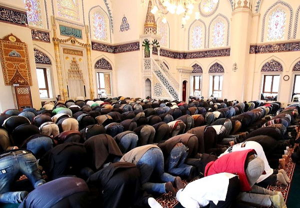 | モスクでの礼拝の光景(トルコ文化センターのHPから) 見学者は、礼拝中には写真撮影が禁止されている。 |