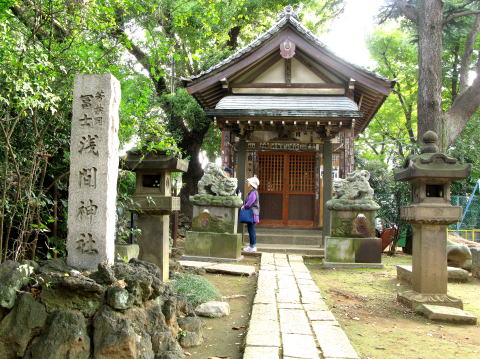 | 世界文化遺産に登録された富士山 江戸時代の庶民は富士山を信仰の対象として崇めていた。もっと古くは、平安時代初期の都良香《富士山記》には,活火山であった富士の噴煙がたなびくありさまを,白衣の美女2人が山峰で舞うと表現しており,山神が女神であることを示している。 江戸時代から、富士山にお参りする信仰が盛んだったが、一般庶民はそう簡単には行けない。そこで考えついたのが、身近な所に富士山のミニチュアを作り、誰もが富士参拝を出来るように築いたのが「富士塚」。 東京都内には多くの富士塚が残っている。品川にある品川富士もそんな富士塚の一つである。 (平成26年10月12日 散策) |