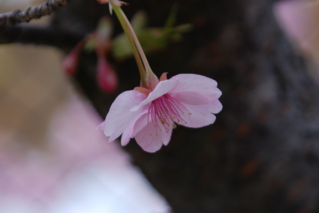 昭和30年頃に河津川沿いの冬枯れの雑草の中で芽咲いているさくらの苗が見つかり、昭和41年頃から開花がみられました。1月下旬頃から淡紅色の花が約1ヶ月にわたって咲き続けて近隣の注目を集め、広まってゆきました。 昭和49年にカワヅザクラ(河津桜)と命名され、オオシマザクラ系とカンヒザクラ系の自然交配種と推定されています。