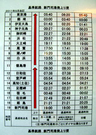 前夜19時に門司を出たフェリーは、高知沖で夜が明けた。この航路では伊勢湾沖とともに陸地から離れているので、ワイファイもケイタイも繋がらない。室戸岬沖を通過する頃には陸地から近くなったので電波は届くようになった。 他の乗客はみな手持無沙汰なので客室で寝そべっているが、私は船首部分のラウンジでけっこう良い椅子に座ってパソコン三昧。そこへ現れた航海士とひとしきり船内でのケイタイ電話やワイファイの受信について話を交わす。