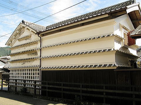 もう一つの特徴は「水切り瓦」。強い風雨から家屋を守るために、水切り瓦という雨仕舞いのための独特の工法が発達した。水切り瓦の小さな庇は壁面に直接雨がかかるのを避け、漆喰の白壁を保護する役目を果たしている。 明治24年に建築されたこの家は、初代が呉服商を営んでいた重厚な造りの建物である。今、この家は「蔵空間茶館」を営んでいて、備長炭を使った自家焙煎のコーヒーはとても美味しかった。まさか、こんな田舎で「マンデリン」を飲むことができるなんて思ってもいなかった。 |