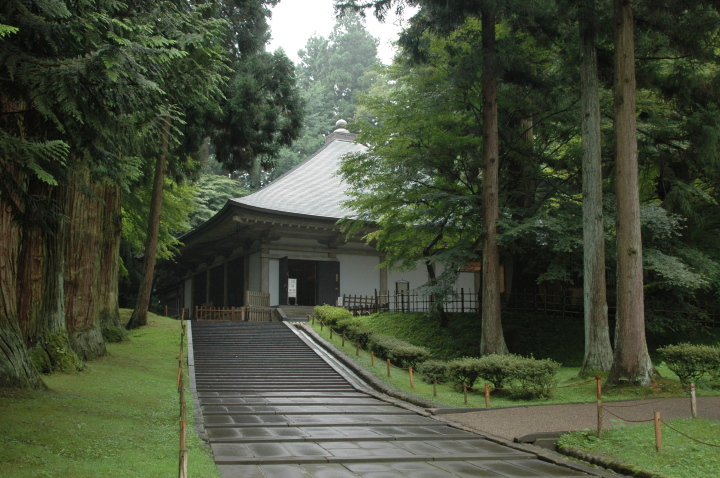 | この日深夜0時半に岩手県北部を震源とする地震があった。早池峰ダムは震源地から直線で5〜60キロぐらいで、震度5ぐらいだったらしいが、あまり恐怖はなかった。すぐに妻や友人から電話とメールが入った。 再び早池峰登山口小田越へ車を走らす。サッカーボールぐらいの大きさの石がいくつか道路に転がっている。 小田越山荘には昨日のおじさん達がいて、地震で倒れて散乱した物を整理している。ここはかなり揺れたようだ。昨夜車中泊したダムサイトは地盤が強固だったのだろう。 また、お茶をご馳走になってキリが晴れるのを待ったが、晴れる気配はない。 「来年、また来ます。」と言って、山を下った。 平泉は数年前に来たときは、ちょうど金堂の修復中で見ることが出来なかった。初めて見た金堂はまばゆいばかりに輝いている。 |