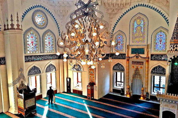 | 金曜礼拝など集団で礼拝が行われる大きなモスクをジャーミイと呼んでいて、東京ジャーミイは日本最大規模のジャーミイです。 建築資材や調度品のほとんどはトルコから運んだものをトルコの職人が1年をかけて建築したものです。 |