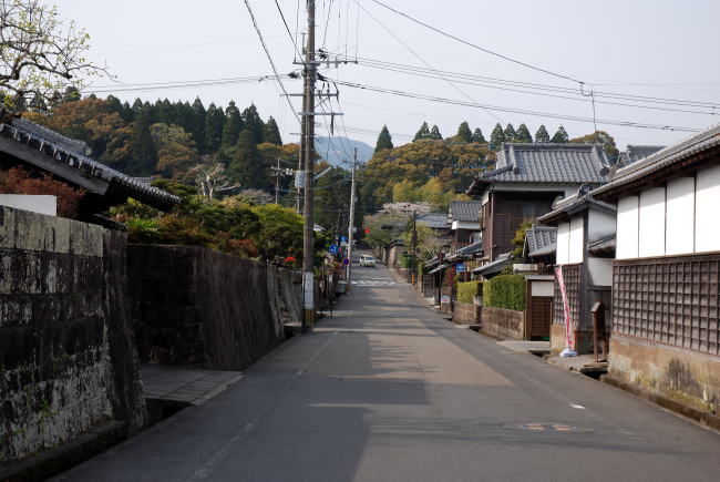 | 飫肥(おび)は、飫肥藩伊東家5万1千石の城下町として栄えた町であり、飫肥城を中心とした江戸時代の武家屋敷町、町人町、寺町などの町並みが多く残されていて、文化庁の「重要伝統的建造物群保存地区」に選定されています。 城下町は三方を酒谷川が半円状に囲み、城に接する地域は一段高くに高禄の侍屋敷があり、南部は中級侍屋敷、その南に町屋、さらに南に下級侍屋敷が配され、東西に寺院が建っています。 侍屋敷は、道路に沿って石垣が積み上げられ、正面に薬医門・長屋門、その奥に生垣等を設けた瓦葺屋根の主屋を配しています。 |