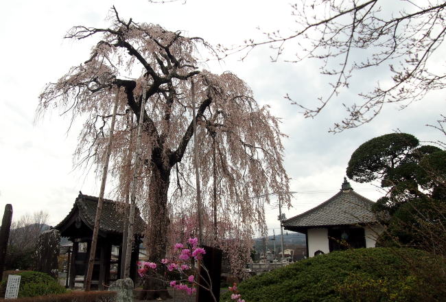 この花の下で、毎年檀家の人たちが花見の宴を開いて賑わうそうです。 ( 平成27年4月3日 )