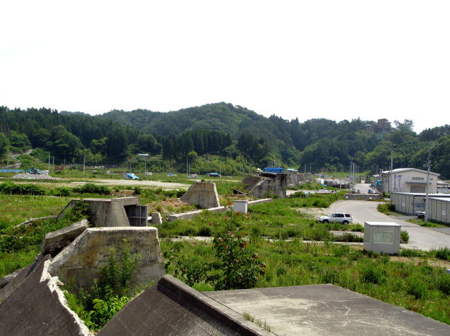 | 現在、田老では高台の山を切り崩して平地にし宅地を造成している。その一部は既に造成を完了し区画割りした土地を分譲し、建物の建築が始まっている。近いうちに漁師は海まで車で通勤して漁業することになると、観光協会のガイドは言っていました。 そして、陸中海岸国立公園という公園名を、環境省は「三陸復興国立公園」と変えている。国を挙げての震災復興です。 |